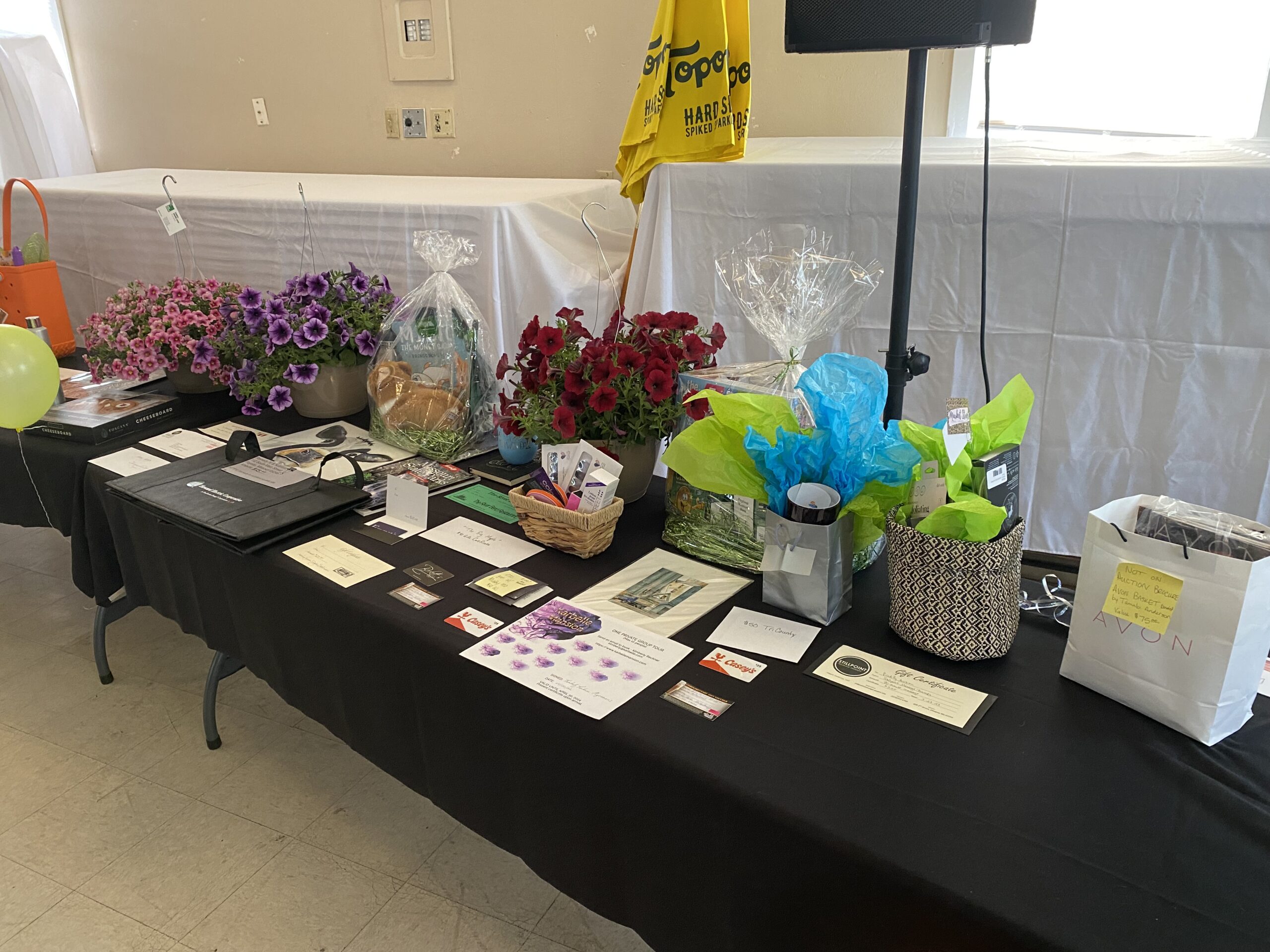 Upon check-in to the event, you will be given a bid number and a program listing of all the items available for bid. Most items are available for a .25 – .50 cent bid, with a few of the larger prizes being $1.50.